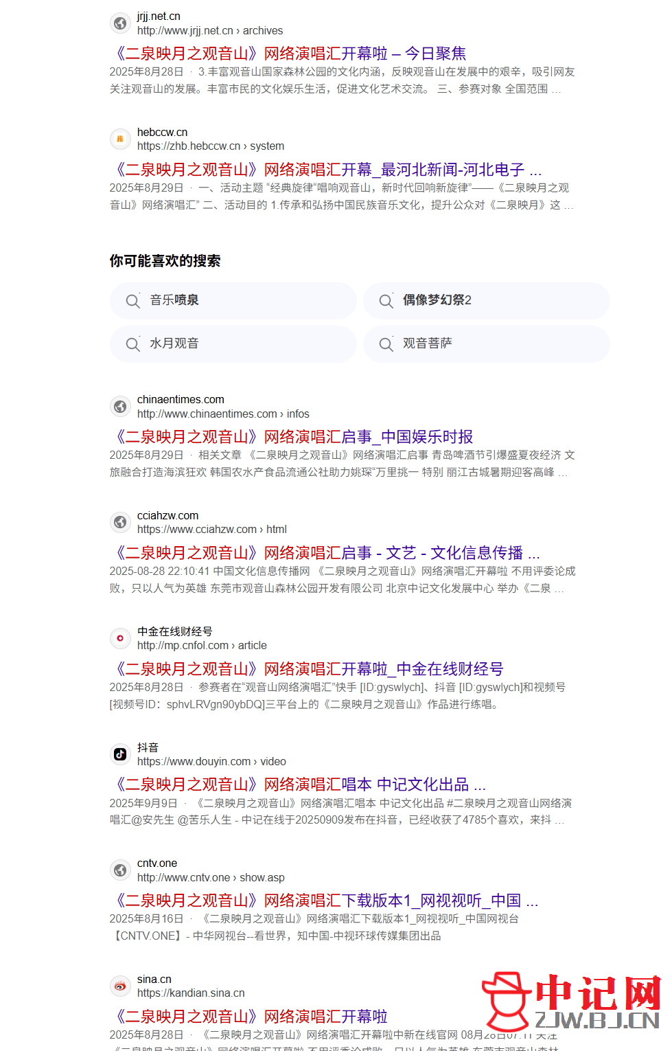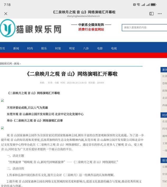 8月28日,“《二泉映月之观音山》网络演唱汇开幕啦”的消息见诸网络,包括《中国联合商报》、《长城网》、《中国娱乐时报》、《娱乐最前沿》等近千个网站。