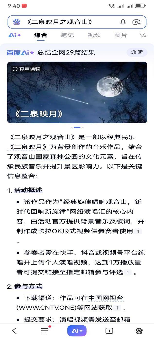 百度AI+对“二泉映月之观音山”进行了如下介绍: